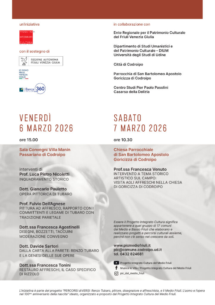 To mark the centenary of his birth and held in conjunction with the exhibition “Renzo Tubaro: Intonare la realtà,” a two-day conference has been organized. The events will take place on Friday, March 6th, at the Villa Manin Conference Hall in Passariano di Codroipo, and Saturday, March 7th, at the Parish Church of San Bartolomeo Apostolo in Goricizza di Codroipo.
