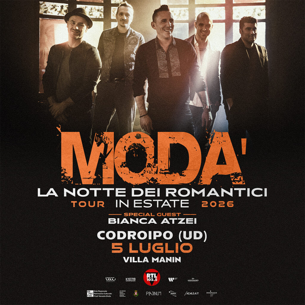The concert, scheduled for July 5th, 2026, at 9:00 PM, is organized by Platinum Live in collaboration with Zenit, ERPAC FVG, Promoturismo FVG, and the Municipality of Codroipo. Tickets will be available starting at 2:00 PM on Friday, March 20th. For further information, visit www.platinum.fvg.it or follow Platinum Live on Instagram and Facebook.